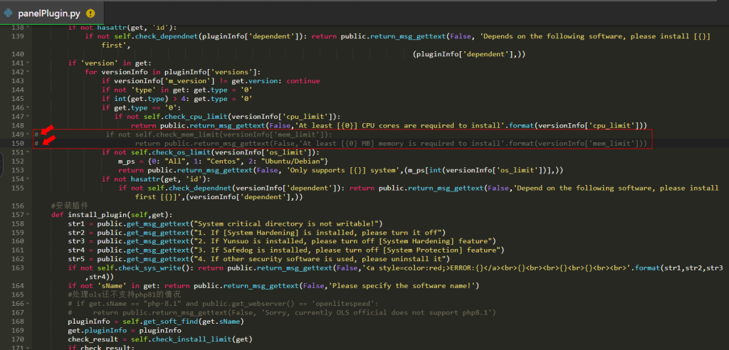 aaPaneli Mysql 5.7 versiyonuna getirmek için en az 1560mb Bellek istiyor. Mysql 5.7 versiyonunu bu ram değerinin altındaki sunuculara yüklemek için /www/server/panel/class/panelPlugin.py dosyasındaki 149. ve 150. satırları yorum satırına al.