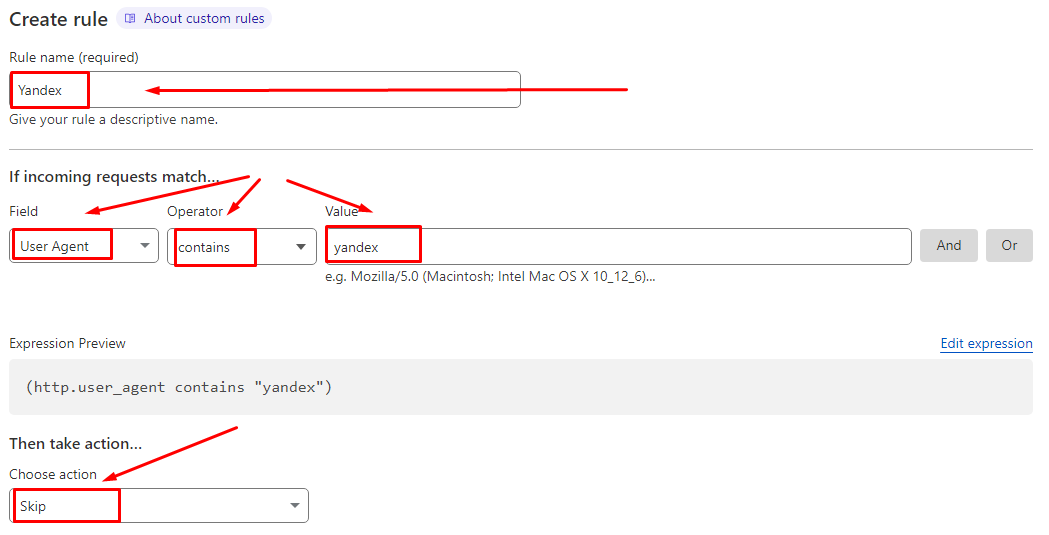 Log Matching requests Açık pozisyona getirirseniz Yandex Botlarını ve istek sayılarını Loglarda görebilirsiniz. Kurala Or eklemesi yaparak google, bing ve baidu eklemesini yapmanızı tavsiye ederim.