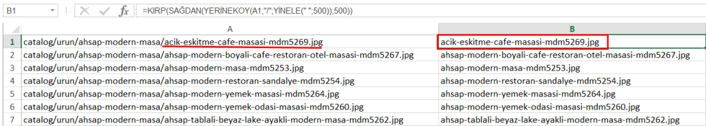 Excel Sağdan Belli Karaktere Kadar Yazıları Almak